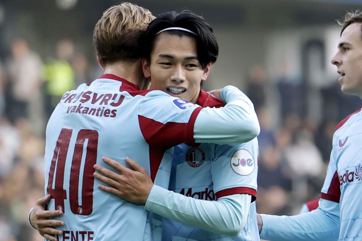 インターナショナルウィーク明け初戦、開始早々に日本人ストライカーがゴールを奪った。7分、相手のディフェンスラインでのパスミスを上田が奪うと、PA手前から思い切りよく放ったシュートが決まりフェイエノールトが先制。2得点目は33分、今度はゴール右横深くまでドリブルで攻め込んだアニス・ハジ・ムサからの折り返しを、待ち構えていた上田が右足で合わせネットを揺らした。