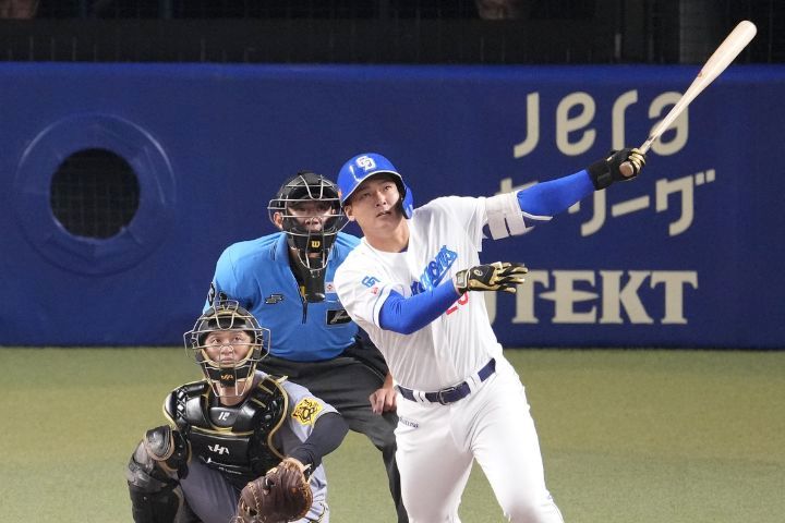2点差に迫られた6回には、この日に出場選手登録された24歳の長距離砲が、待望の1号を打ち上げた。先頭打者の7番・石川昂弥はフルカウントからの6球目のツーシームに食らいついた。やや泳がされたように見えたが、打球は広い本拠地の左翼席中段に飛び込んだ。