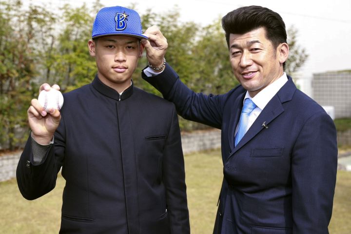 4年前に三浦監督と2ショットに応じた小園。その表情にはあどけなさも残っている。(C)産経新聞社