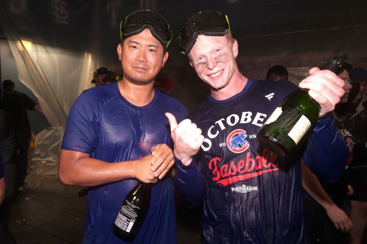 5シーズンぶりとなるプレーオフ出場を決めたカブスのシャンパンファイトの中で、今永昇太が「シャンパンというものは口から飲むよりも肌から吸収したほうが美味しいことがわかりました」とコメント。今永らしい言葉の表現は多くの日米各メディアにより取り上げられており、ファンの間でもSNS上などで大反響だったようだ。