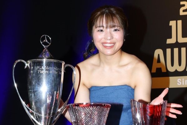 女子ゴルフ表彰式の一番人気⁉ 今季初優勝30歳にツアー仲間から「たまりません」「ビジュ良すぎです」「はい可愛い!!」の声